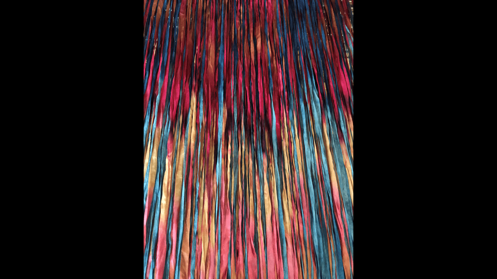 If students want to incorporate silk ribbon into their scarf an additional $118 per student will be charged.  Participants will need to let the instructor know ahead of time if they want to use ribbon, so that she can obtain it for you. See photos. This makes for a spectacular scarf – but a bit pricey.