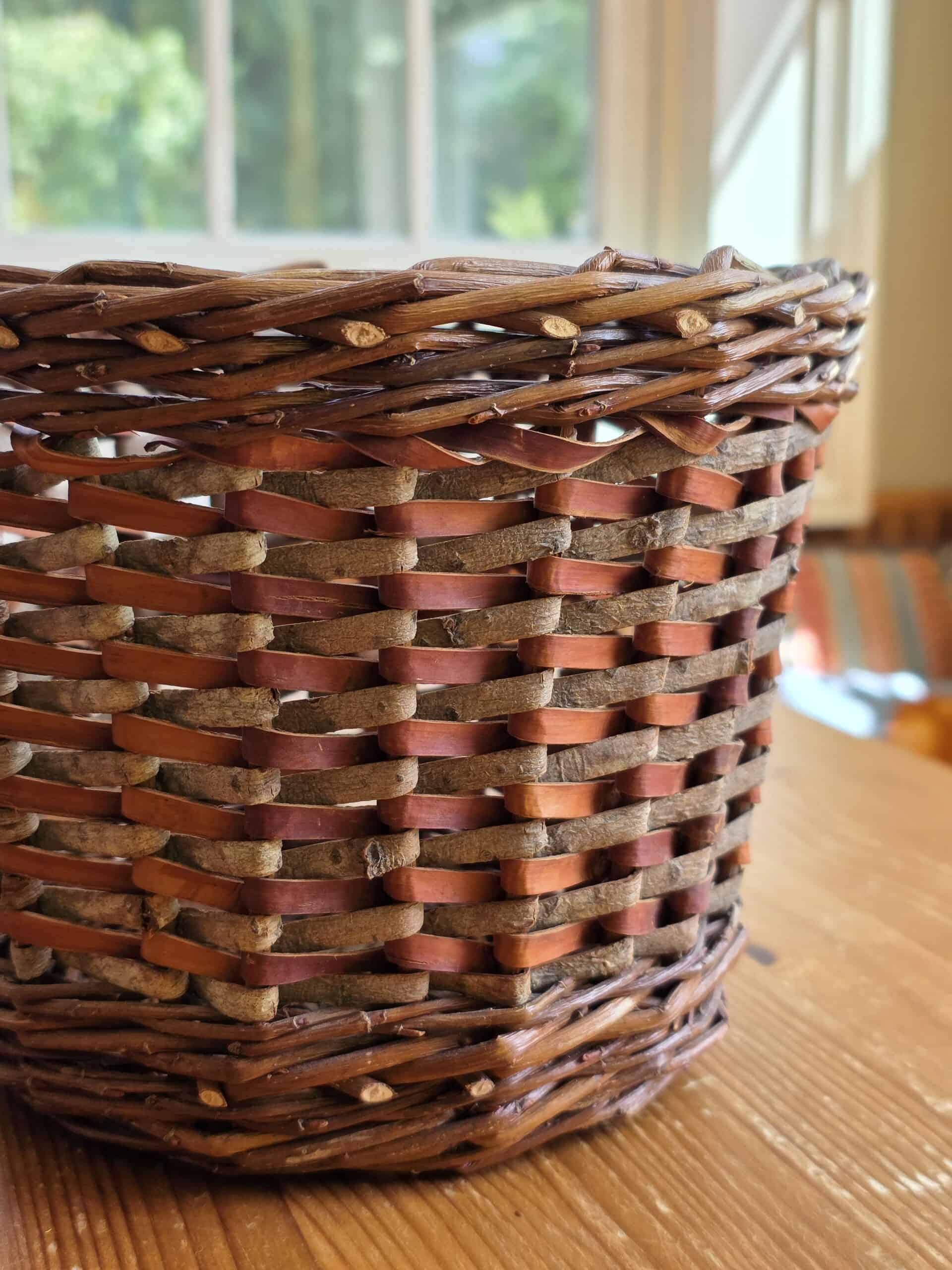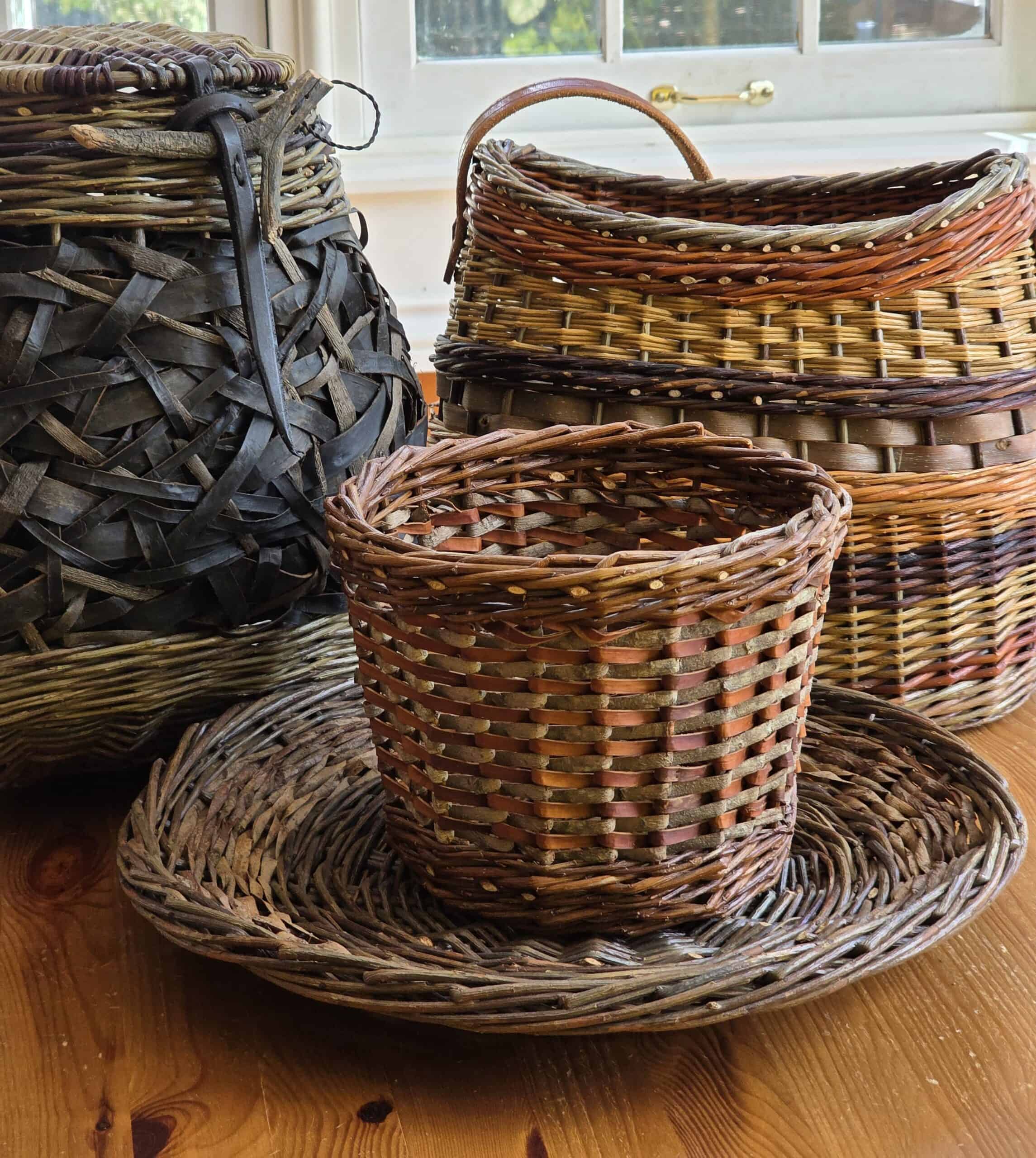 Working within either round or oval baskets we can expand into more decorative techniques by working with color or learning different forms of side weaves such as “Irish Weave”, “Zig-zag”, or “Fitching.” We will also explore how to include different textures by adding bark accents. Learn how willow bark is stripped and processed for use in basketry, and the tips and tricks to using it effectively in your work.