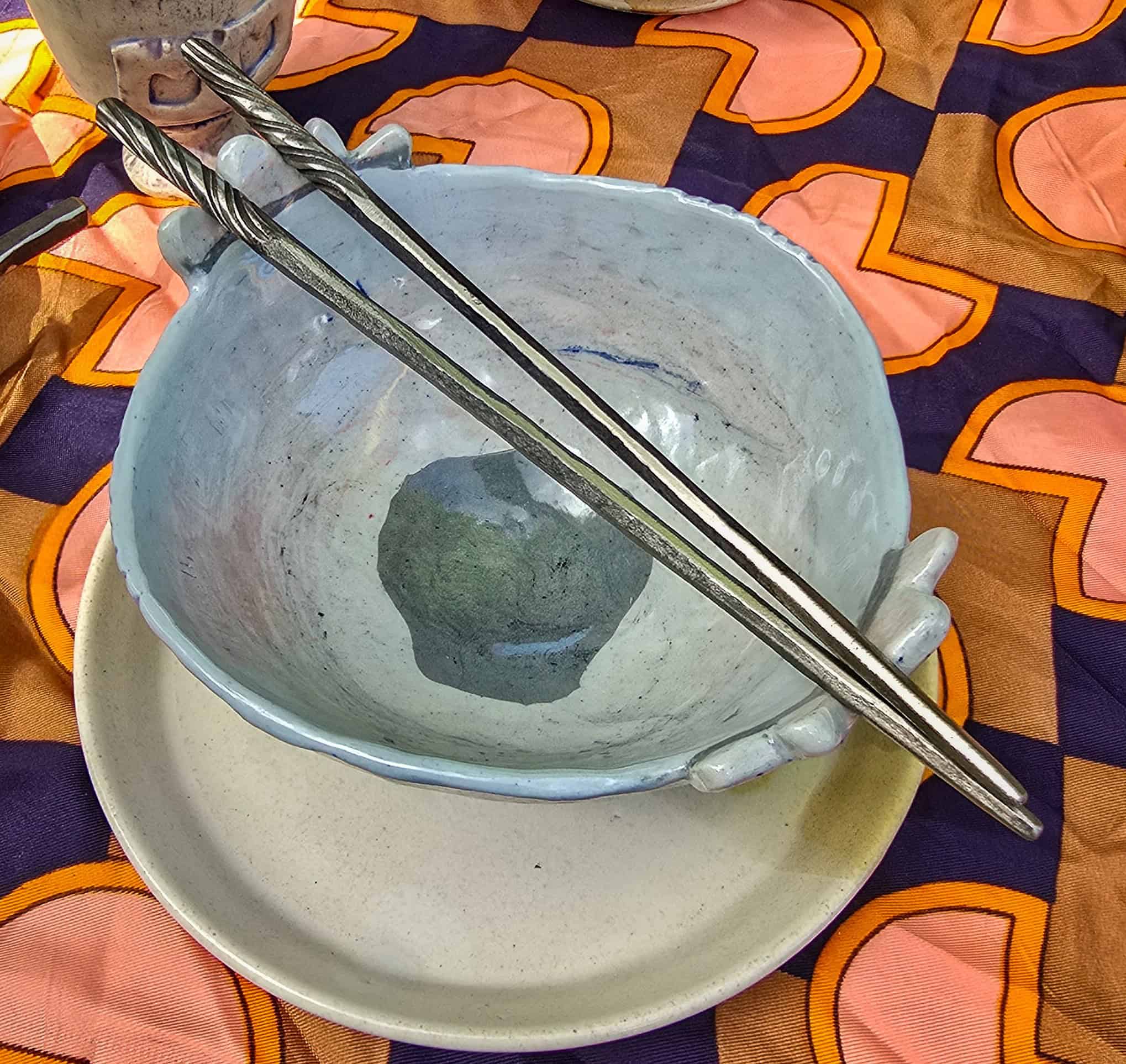 Forging one of something is relatively easy. This course will focus on forging two pieces that are the same width, length, and feel natural and symmetrical when using them to grip and eat food. Chopsticks must feel natural and balanced in the hand and accomplish the job of transporting food to the mouth! This course will also provide instructions on how to work with and finish stainless steel. It’s a bit more finicky as compared to mild steel. If time permits, students will fashion a rest for their chopsticks.