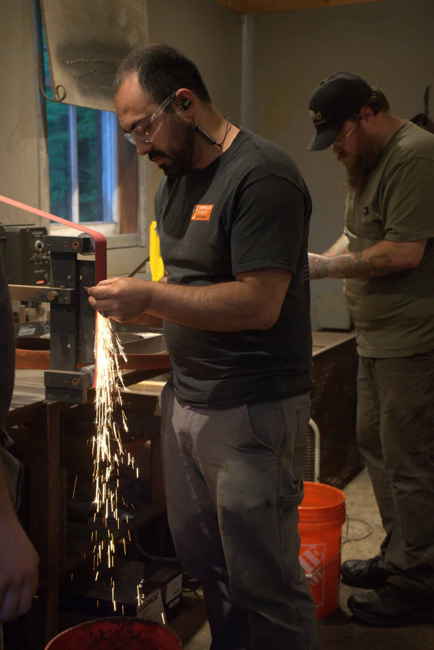 This course is meant to serve as a primer to beginners hoping to learn the basics in all aspects of bladesmithing. We will cover basic EDC design, steel and material choices, as well as forging, grinding, heat treating, and polishing. We will explore various ways of fitting handle materials to our knives, and each student can expect to leave with a finished 3-5 bladed knife as well as a firm grasp of the techniques and processes used in custom knife making to go from a bar of steel to a fully finished and sharpened knife. Prior experience is not necessary