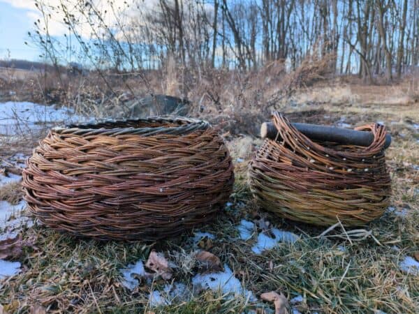 Rands! Slews! Zig Zags! In this three day class intensive, advanced beginner to intermediate level willow weavers have a chance to explore and learn as many side weave patterns as they dare. From a simple English rand to a double Irish wale/open weave and anything in between is fair game. Having a variety of side weave patterns to choose from can greatly diversify and enhance what you can weave from a simple round basket. Because the focus of this class is side weaves, students will have the option to start with pre-made round bases and prepared stakes, but making a basket from the start with minimal instruction is also encouraged. We will also refine our border-laying knowledge to finish the baskets. Willow is a stronger more tension-y material than many other basketry materials, strong hands are recommended for this course. Care and use of finished pieces will be discussed in class.