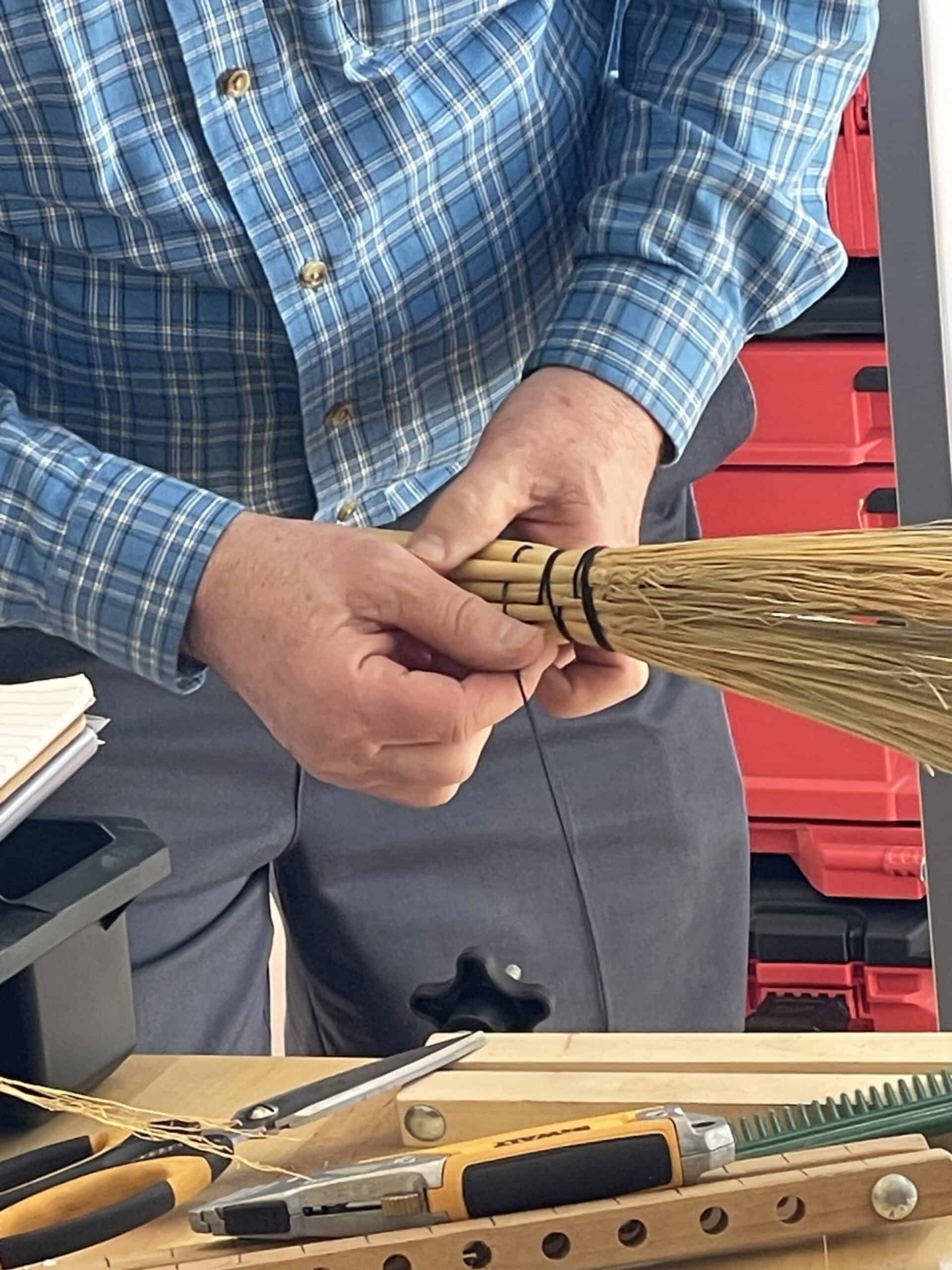 This workshop is for students who want to move up from simple wound whisk brooms to something with a handle. Handled brooms provide the user more reach as well as more stiffness for difficult sweeping jobs.