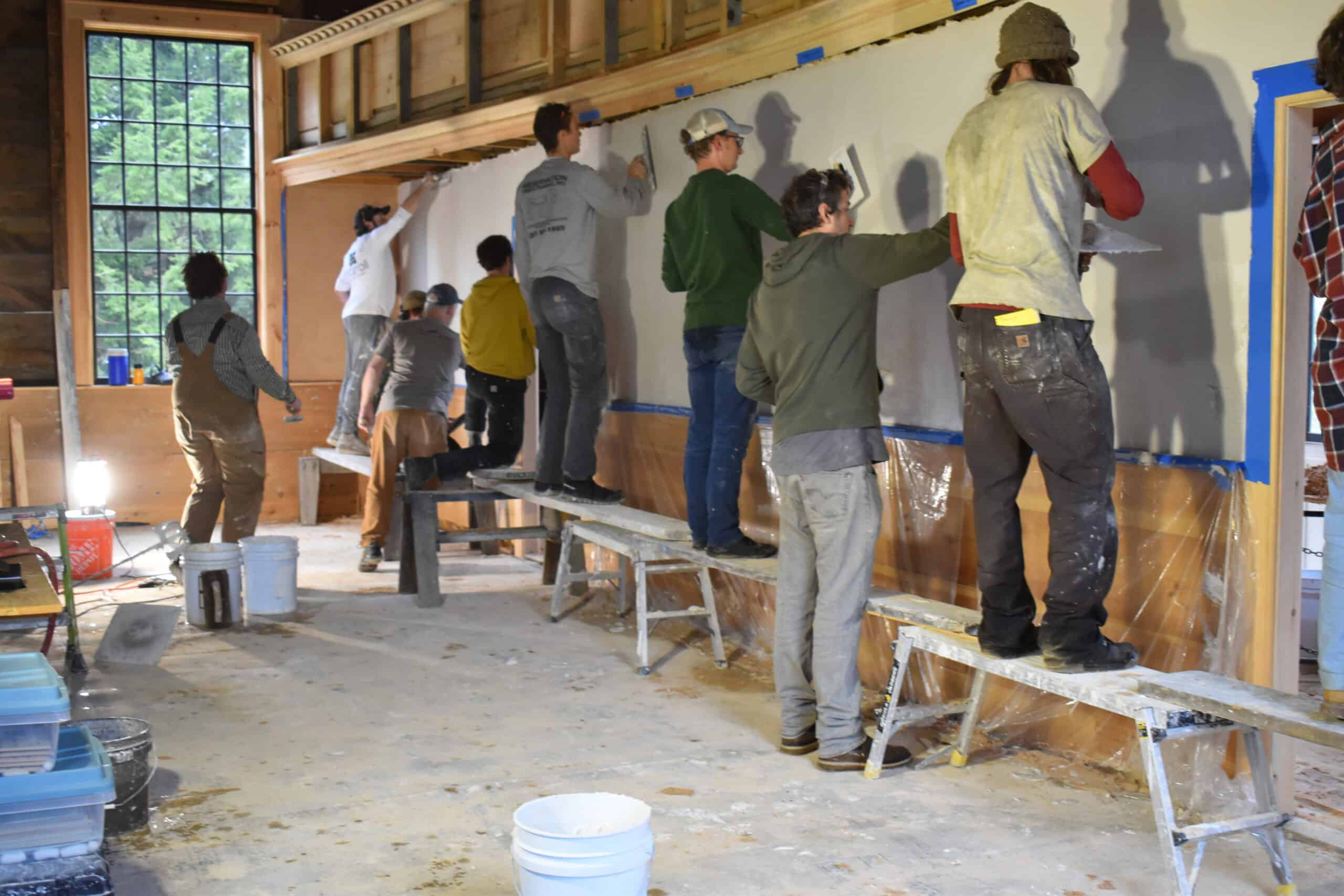 In this workshop students will learn the process of traditional lime plaster creation and repair using traditional materials. Lathe preparation, scratch coat with horse hair basecoat, straight edging and Darby work, plus lime top coat finish work will be covered. While we work together creating beautiful surfaces on one of Sanborn Mills Farm’s historic properties, we’ll talk about the history and science behind this beautiful product.